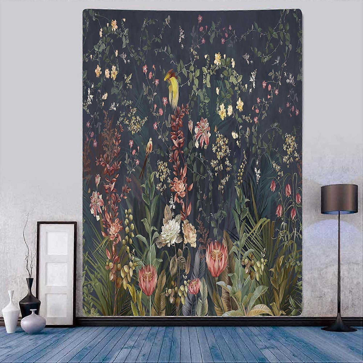 Jungle Garden Floral Plant Tapestry Wall Hanging Natural Wildflower Bird Nature Tapestry 60''x 80'' Tropical Botanical Aesthetic Tapestry for Bedroom