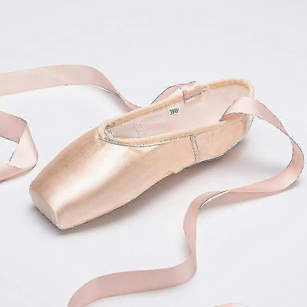 Professional Ballet Pointe Shoes, Satin Material, Non-slip Leather Sole, Fits UK Size 11.5 - 6.5