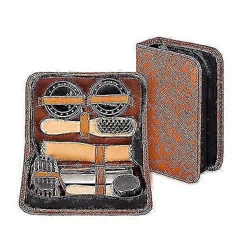 Shoe Shine Kit With Stylish Pu Leather Case, 7 Piece Travel Shoe Shine Kit