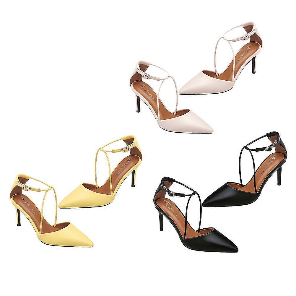 Spring Heels for Women, Stylish Hollow Single Shoes with Buckle Strap, Comfortable Sandals for Shopping and Work, Yellow