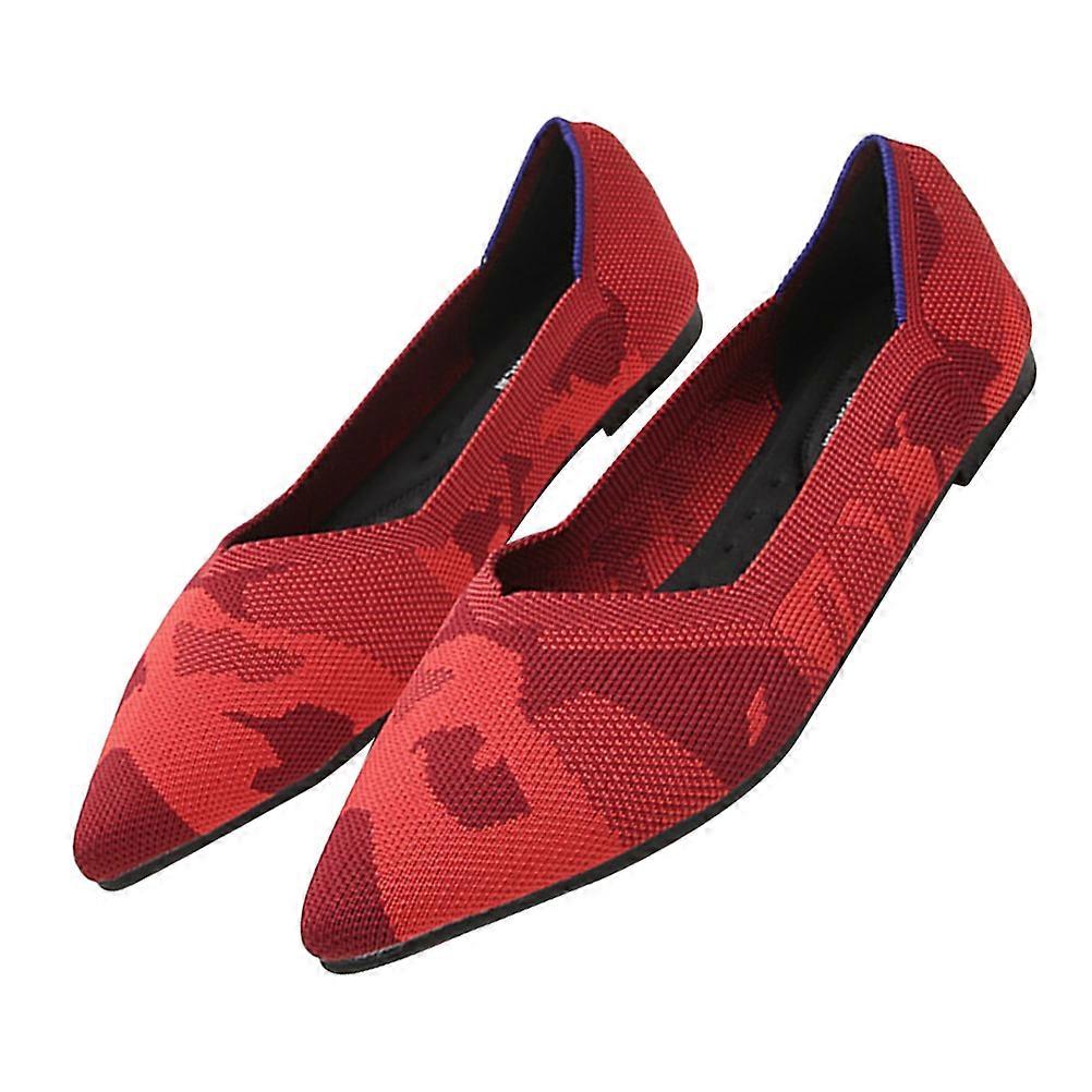 Women Knit Flat-soled Shoes with Pointed Toe Design for Daily Wear in Red Color Featuring Comfortable Wear 1 Pair