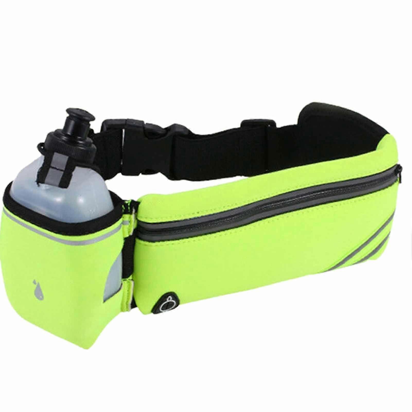 Running Belt Waterproof Adjustable Elastic Waist Strap Outdoor Sports Waist Bag with Water Bottle Green