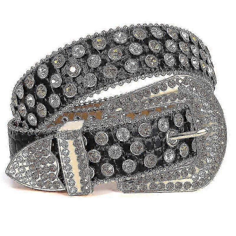 Western Rhinestone Belt For Men Women, Cowgirl Bling Studded Leather Belt For Jeans Dress-105cm(41Inch)-C black