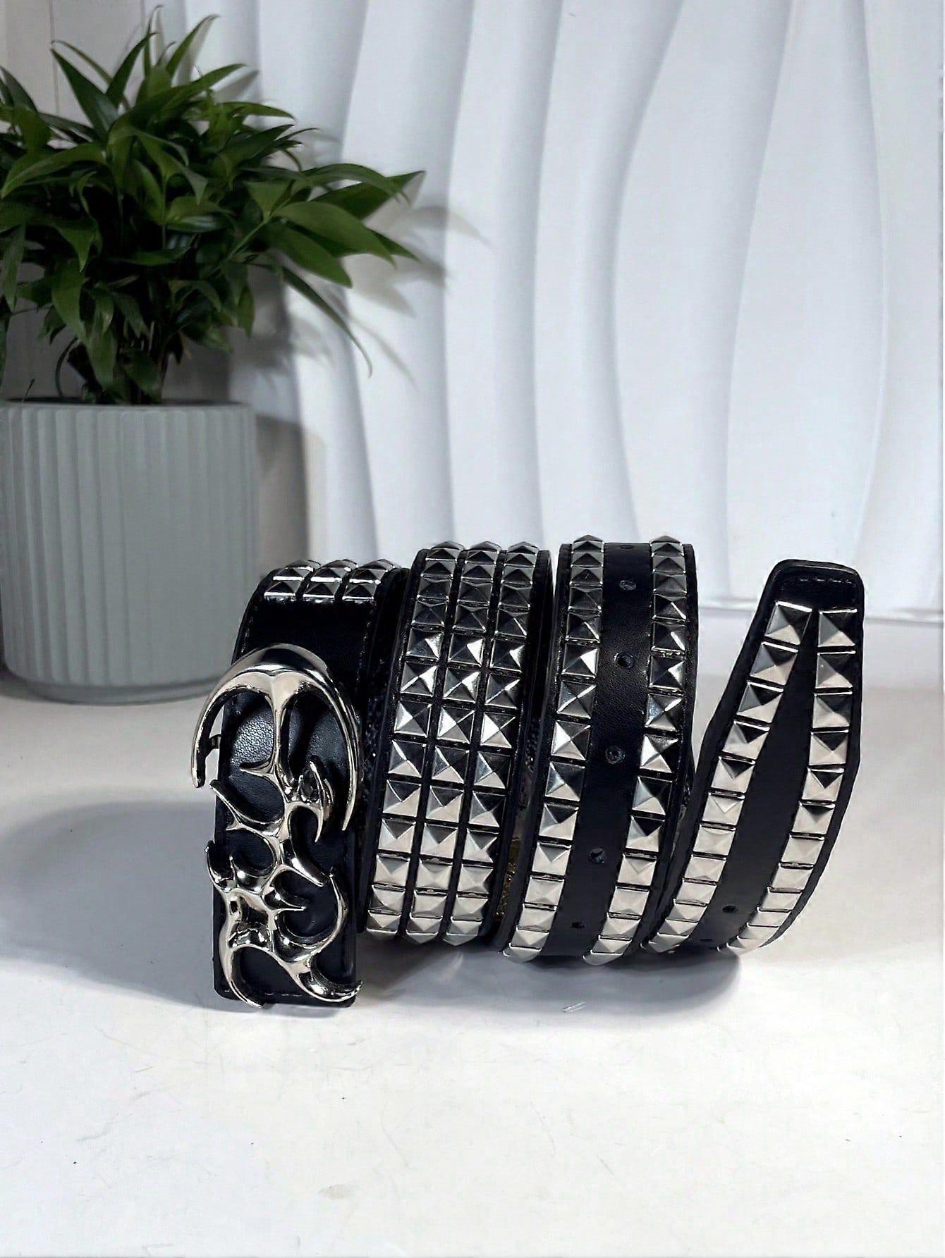 Cyber Punk Gothic Rivet Men's Belt, Hiphop Sigilism Oval Buckle Leather Belt, Suitable For Daily Wear And Halloween