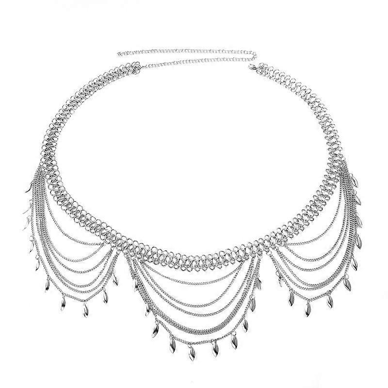 Women's chain belt, women's multi-layer alloy waist chain body chain, belt pendant belly chain adjustable body chain, suitable for jeans dresses