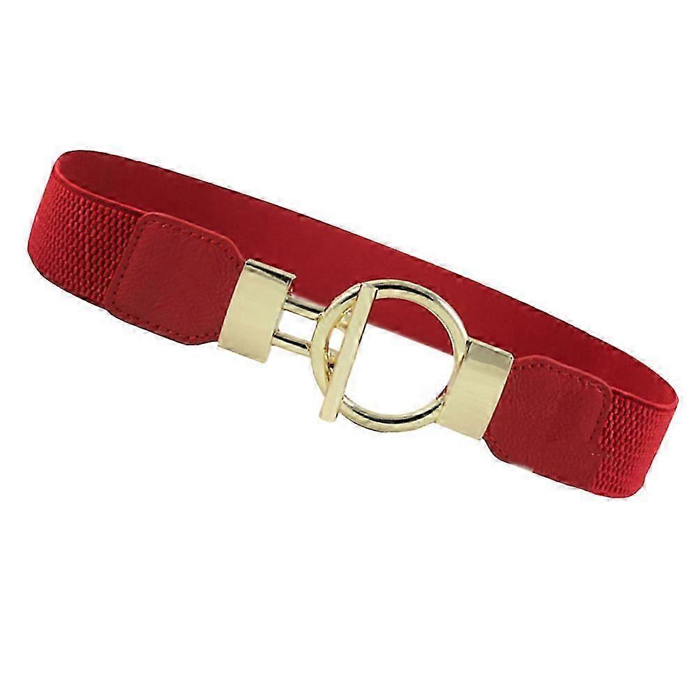 Wide Elastic Belt Women Red Round Buckle Cinch Waist Stretchable Casual Outfits 1Pack