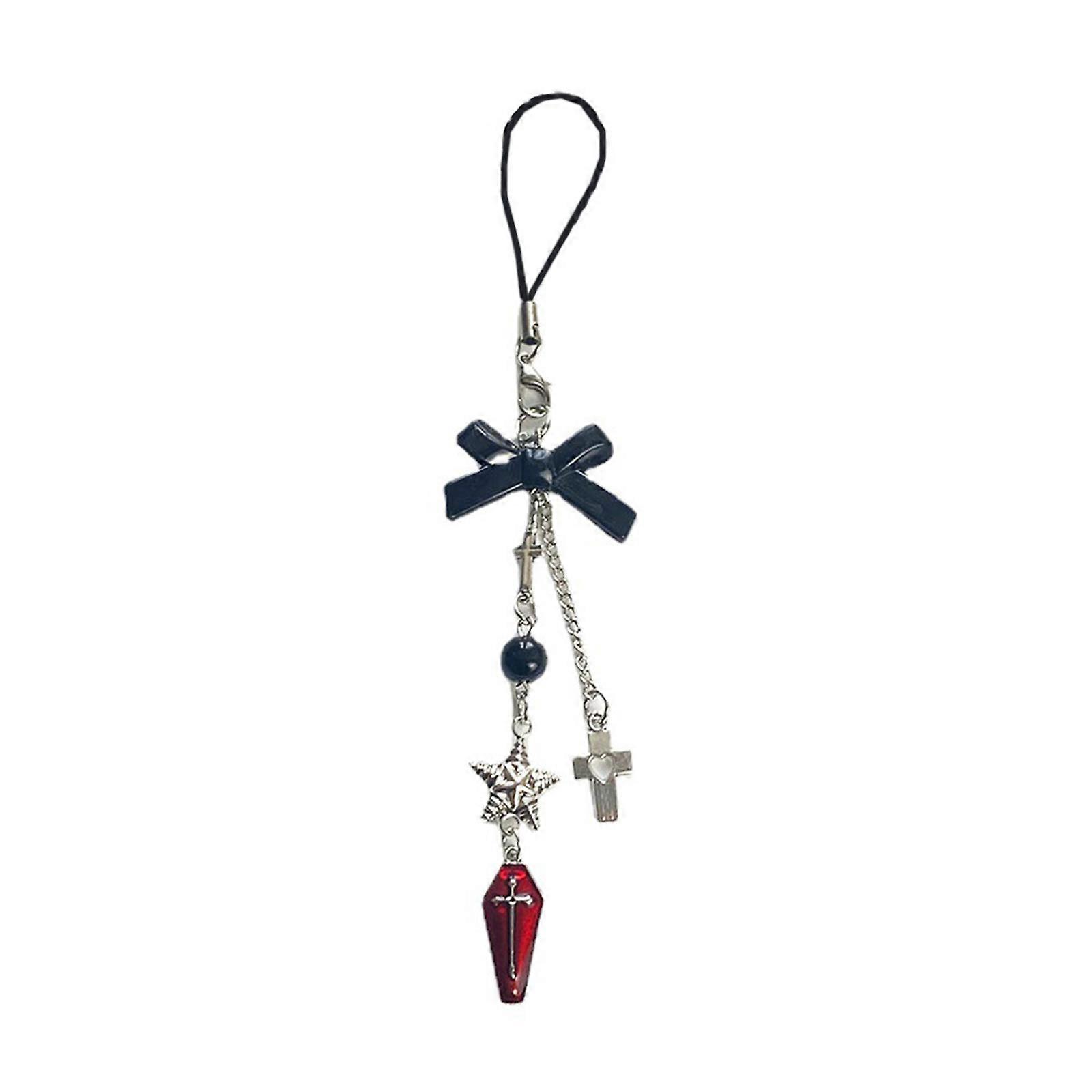Phone Lanyard Wrist Strap Black Cross-Bow Skull Chain Phone Charm Anti-lost Y2K Cellphone Strap Hanging-Cord for Women