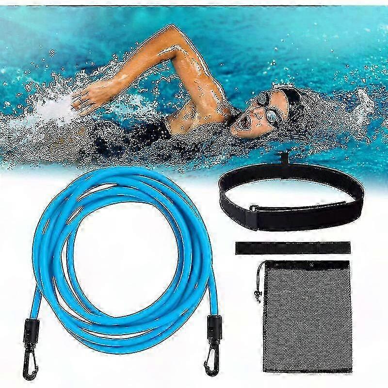 Swim Training Resistance Band, 4m Adjustable Pool Exercise Belt for Adults and Kids, Elastic Swimming Aid