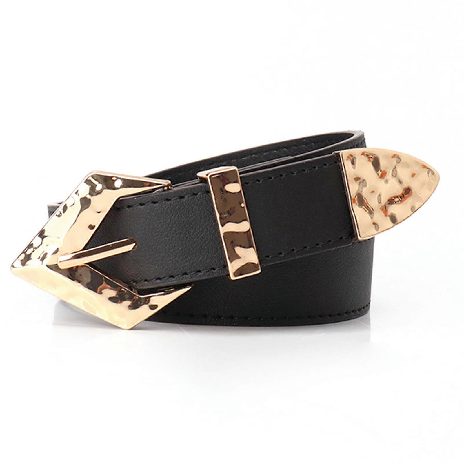 Women Belt PU Alloy Buckle Fine Sewing Lines Fashionable Vintage Belt for Pants Dress Black One size