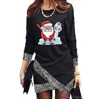 Christmas Party Women Printed Long Sleeve Irregular Short Mini Dress