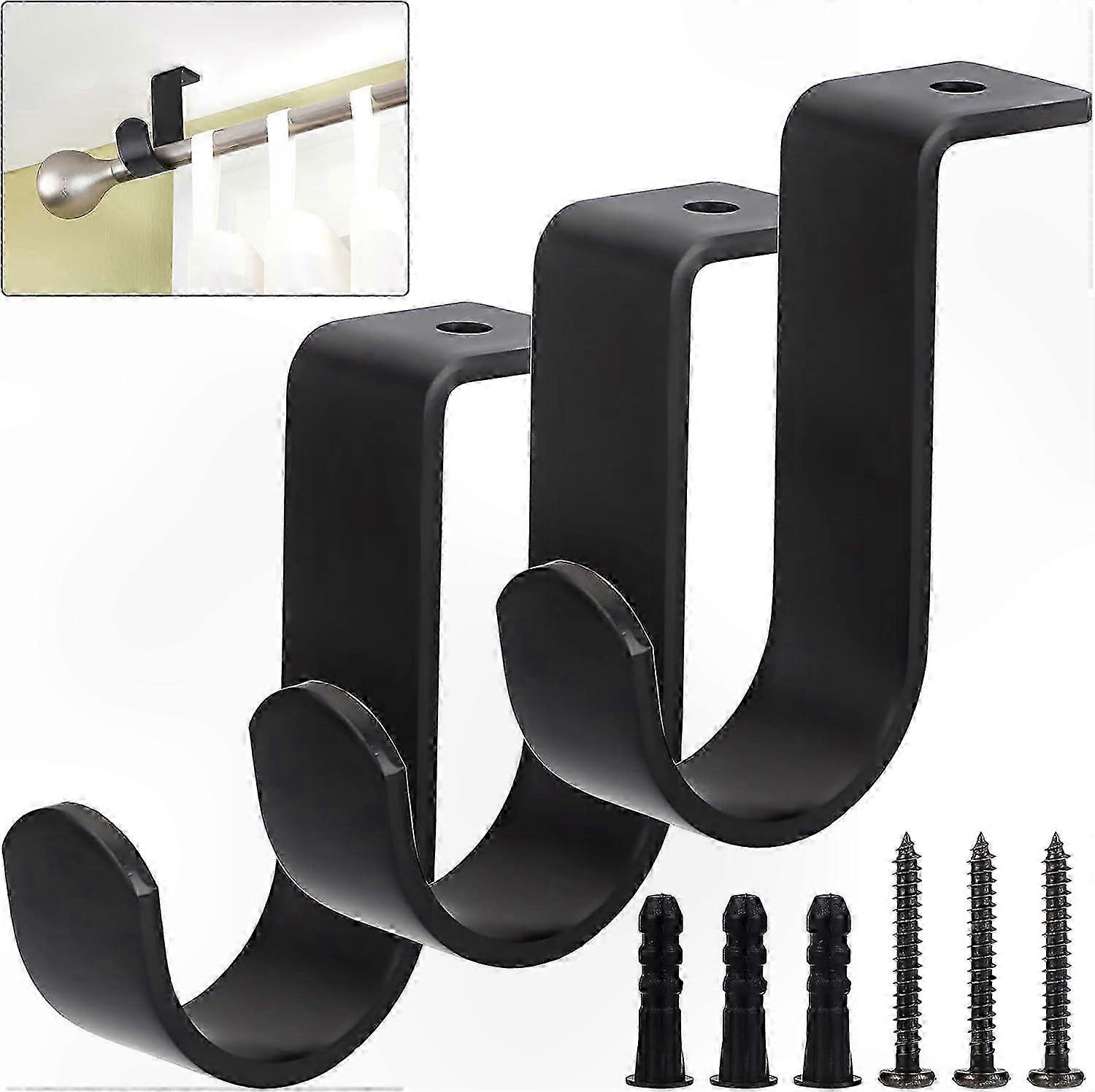Pack Ceiling Mount Curtain Rod Brackets, Metal Curtain Rod Holder for 16-25mm Rod, for Living Room Bedroom, Black
