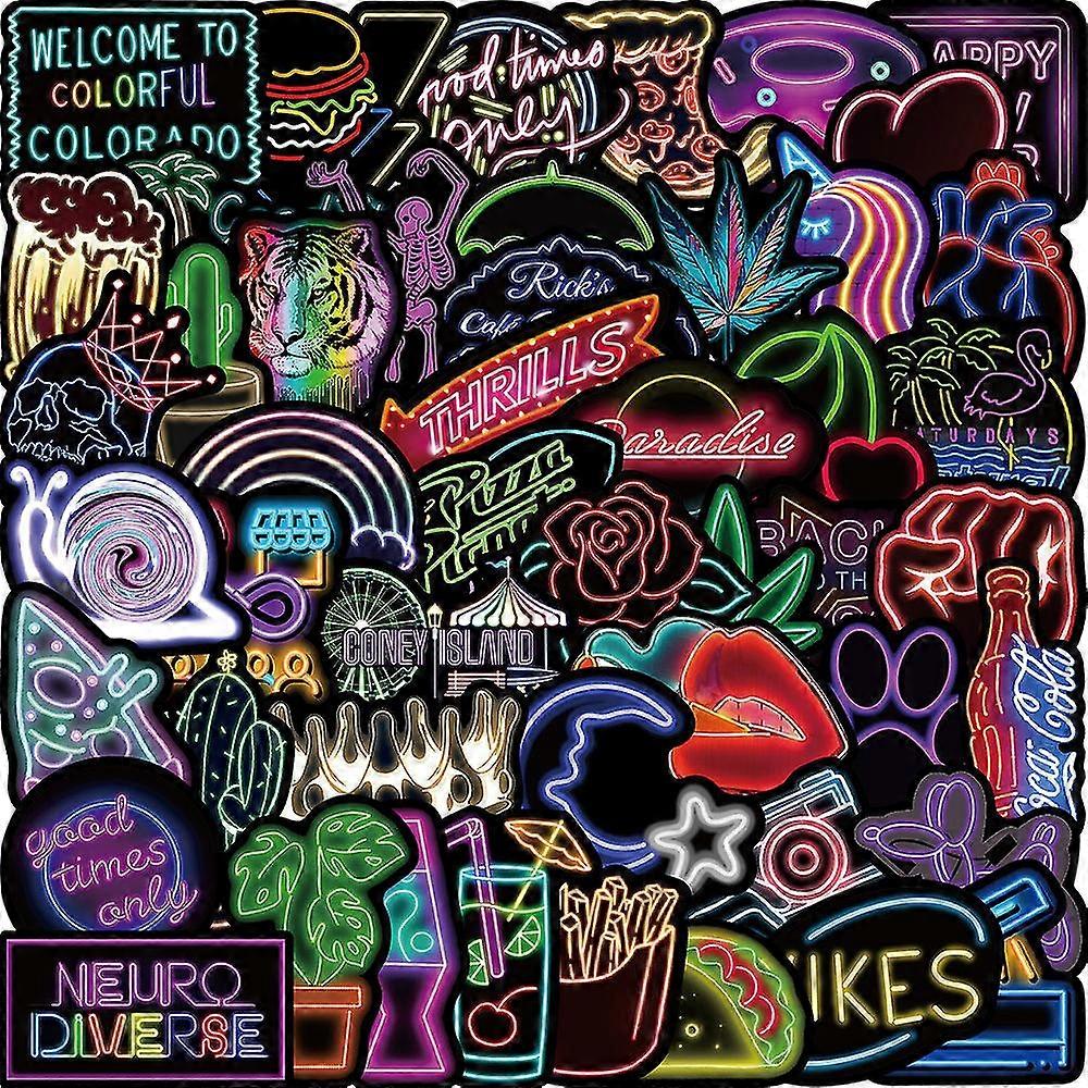 Ghyt Neon Stickers Pack, 50pcs Waterproof Vinyl Stickers For Water Bottles Skateboard Laptop Guitar Computer Phone, Trendy Graffiti Stickers For Teens