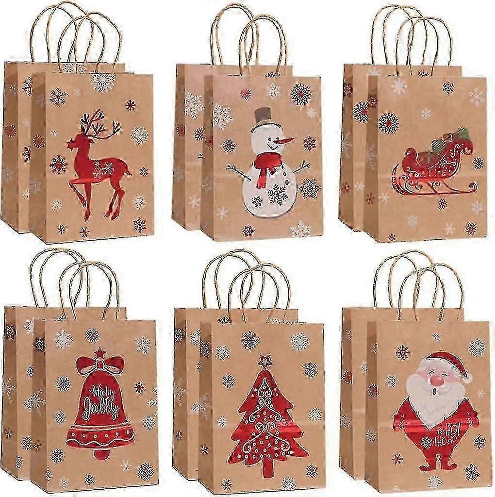 Pack Of 12 Christmas Kraft Gift Bags, Christmas Gift Bags, Christmas Gift Bags, Reusable Christmas Gift Bags, Christmas Paper Bags With Handles