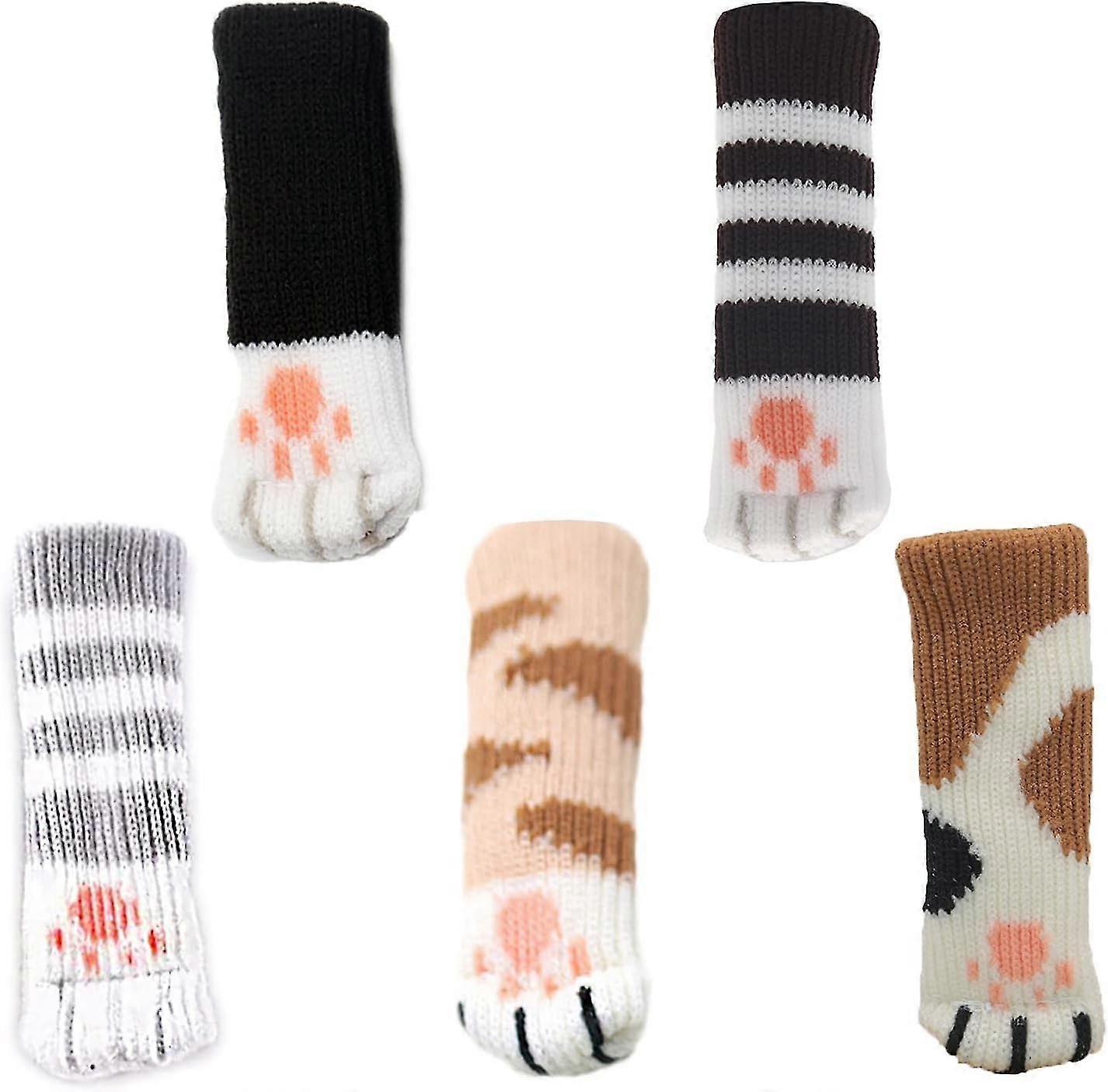 Pack Of 20 Chair Socks, 5 Patterns, Knitted Furniture Socks, Cat, Anti-scratch, Anti-noise Chair Socks, Floor Protection For Desk, Sofa, Bed, Door Han