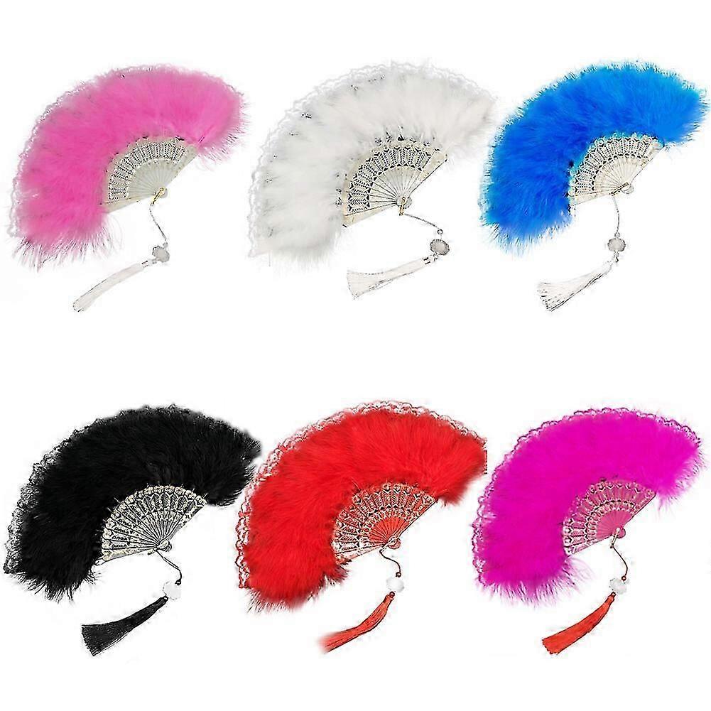 Delicate Fluffy Feather Fans Hand Fan Plastic Foldable Fan Handheld Lace Dancing Fan with Tassels for Costume Dancing Show Gifts