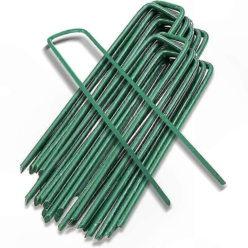 Green Garden Ground Stakes for Tent, Fence, and Artificial Grass Fixing, 20pcs, 15cm Camping and Gardening Staples