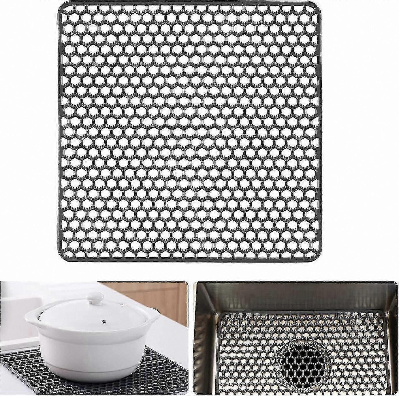 Black Silicone Sink Mat, 13.75" x 13.5", for Kitchen Use with Stainless Steel or Porcelain Sinks