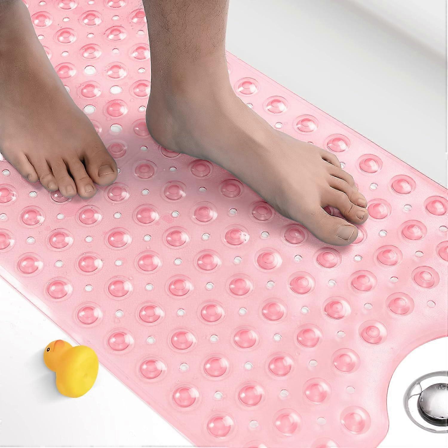 Non Slip Bath Mat for Tub, 101 x 40cm Extra Long Shower Mat Anti Mould, Machine Washable with Suction Cups and Drain Holes,Clear Pink