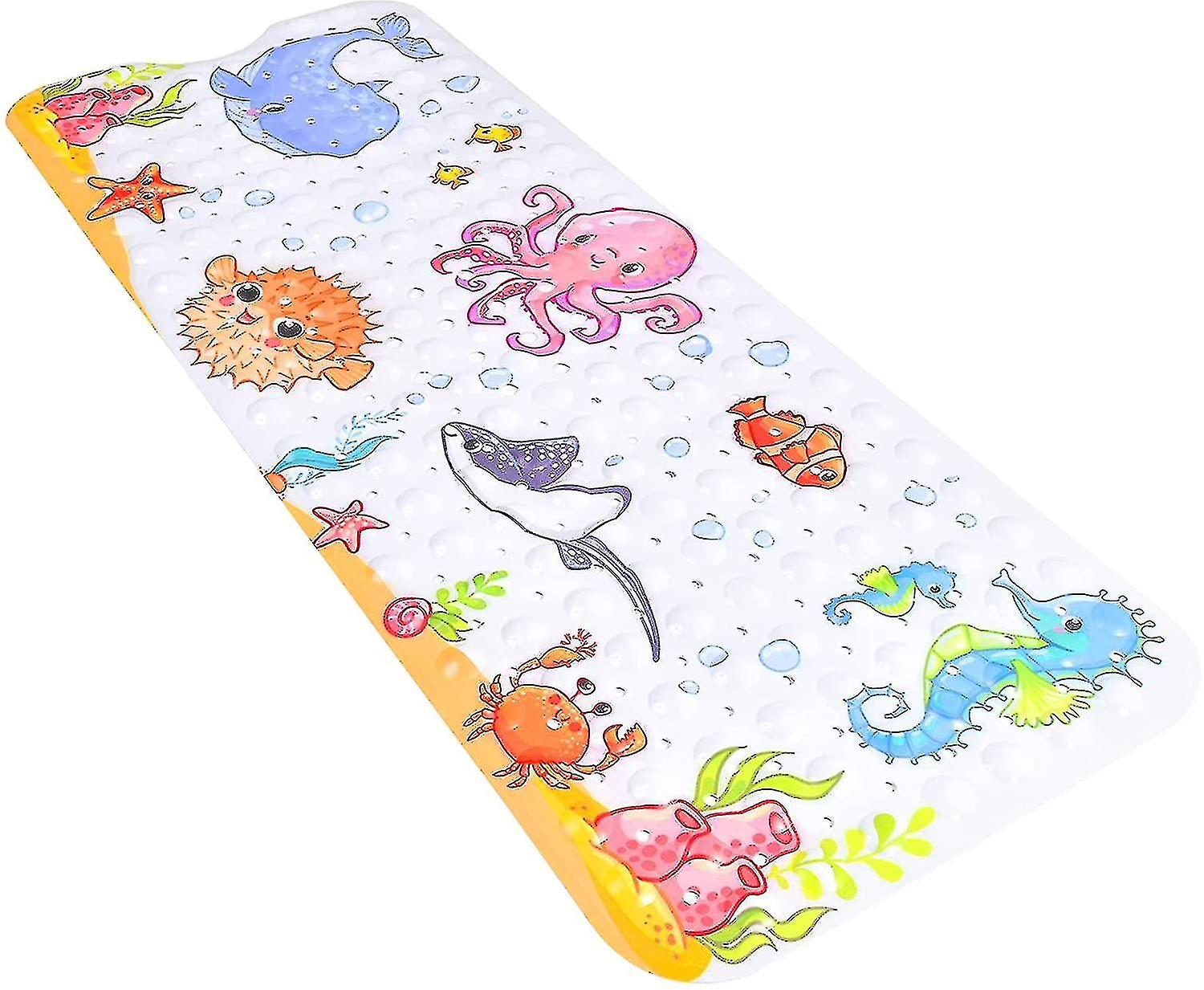 Kids Bath Mat For Tub Non Slip, 40 X 16 Inch Large Cartoon Anti Slip Toddler Baby Bath Mat