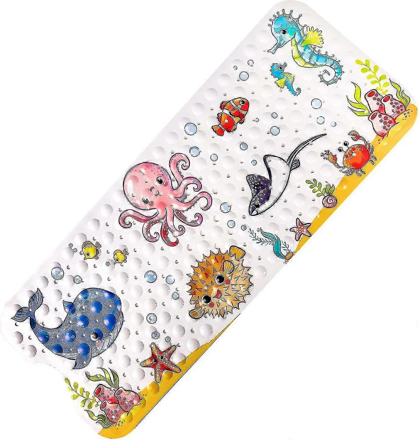 Bath Mat For Kids - (100cm X 40cm) Sea Animal Bath Mat With Xqday 200 Suction Cups Gift