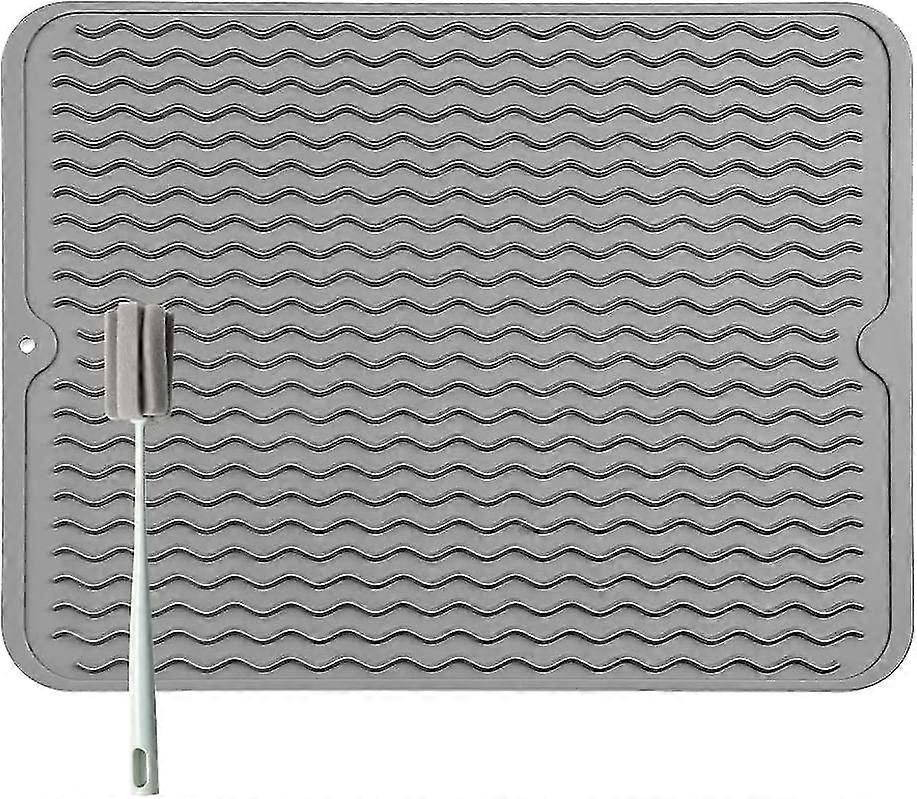 Large Sink Mat - Thick Sink Mat For Quick Drying, 30 X 40cm Drying Pad With Brush Sponge, Bpa Free, Foldable Sink Mat - Non-slip (gray)