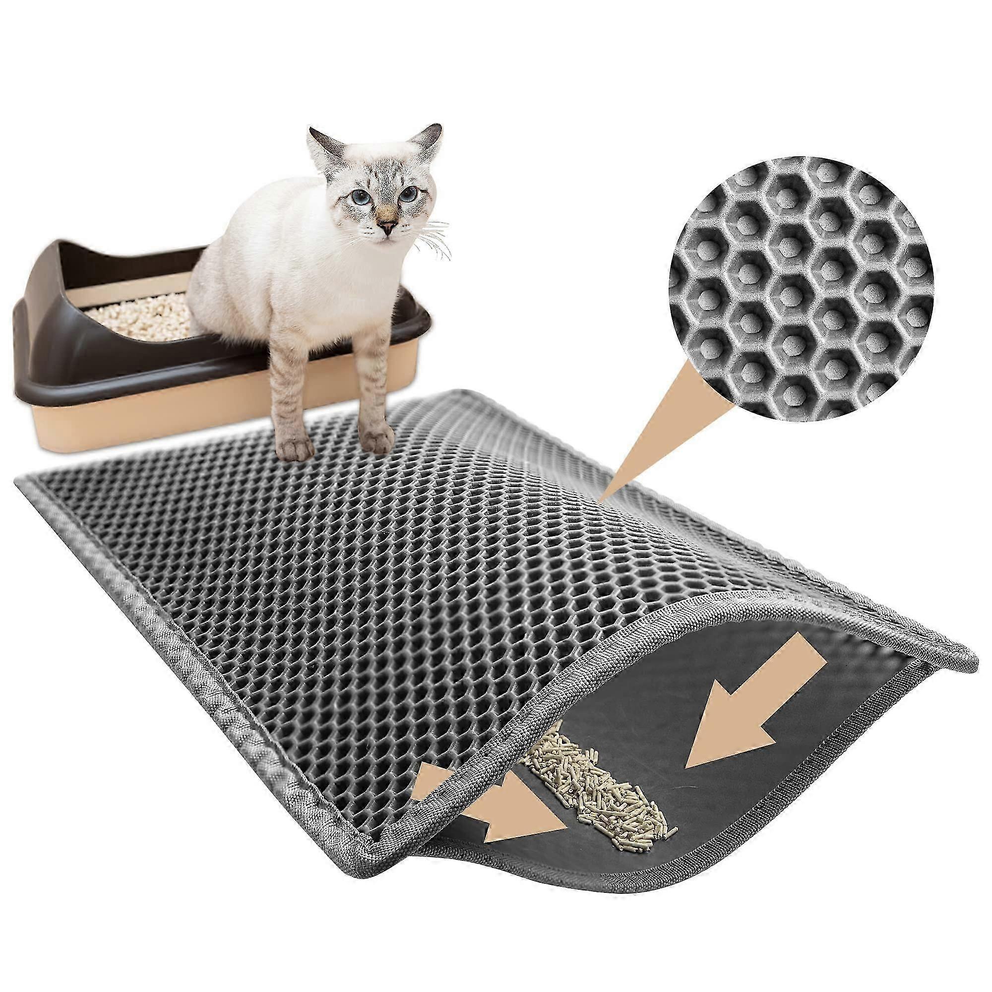 Cat Litter Mat, 60x40 cm Waterproof Cat Litter Mat, Non-Toxic EVA Cat Litter Mat, Double Layer Cat Litter Mat in Honeycomb Design, Gray
