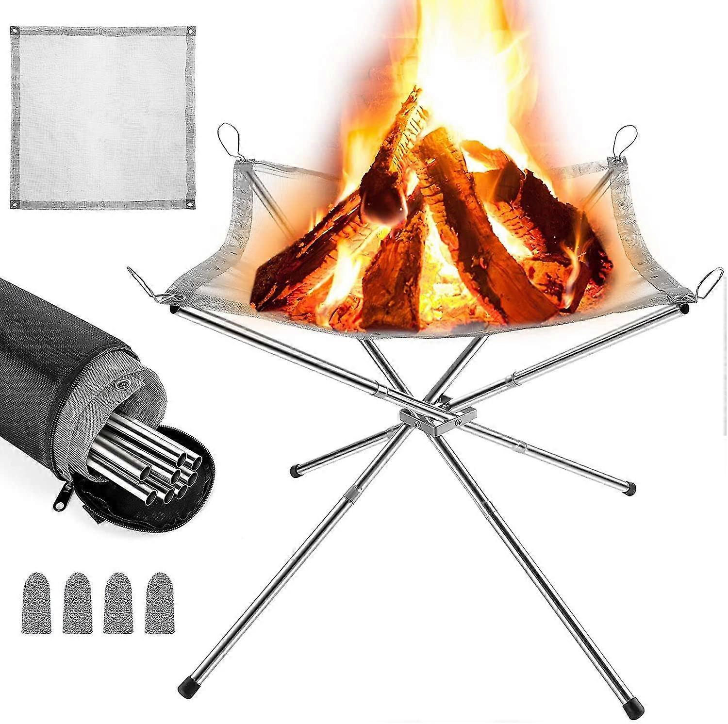 Portable Outdoor Fire Pit, Foldable Bbq/heating Grill, Camping Fire Pit, With Carry Bag, Stainless Steel, For Patio, Camping, Garden, Travel (42 X 42-