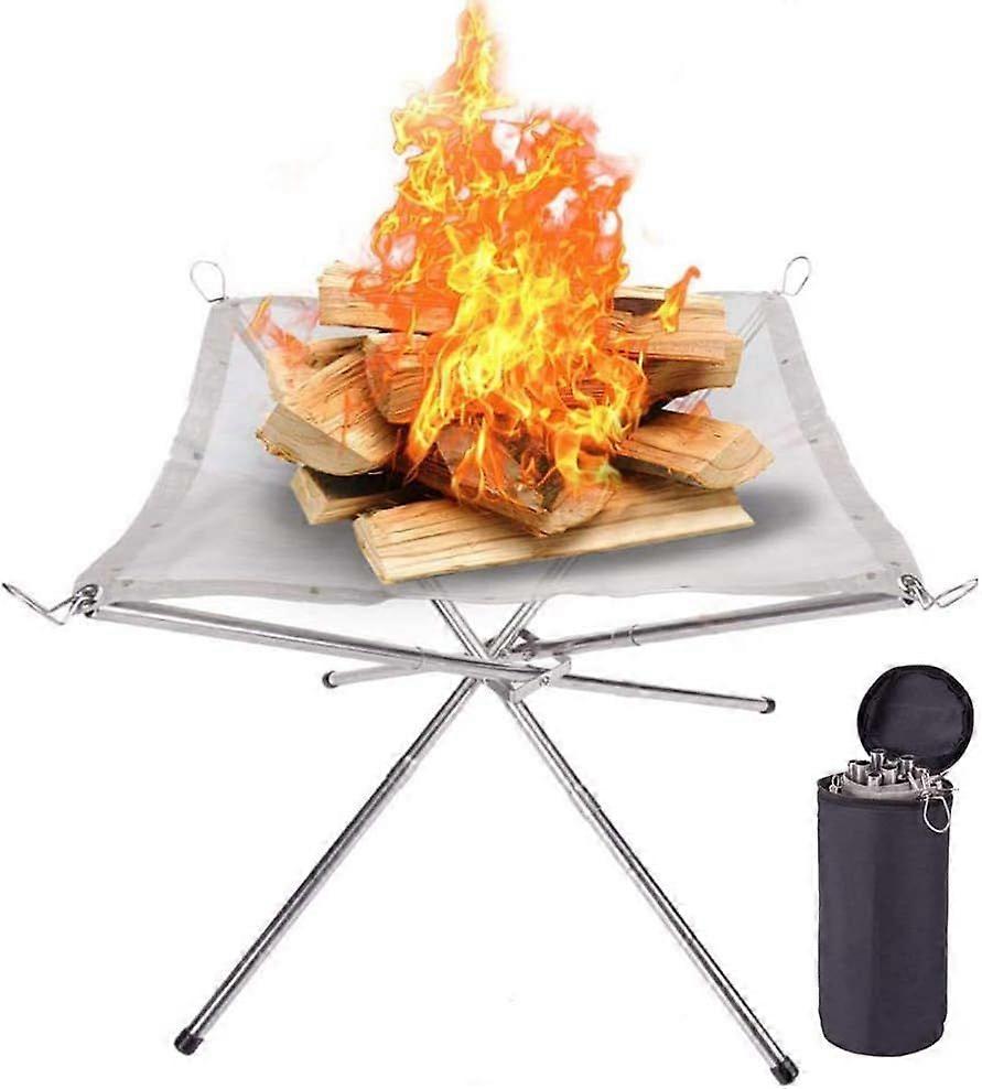 Portable Outdoor Fire Pit, Folding Barbecue/Heater, Camping Fire Pit with Carry Bag, Stainless Steel, for Patio, Camping, Garden, Travel (56 x 56 x 43