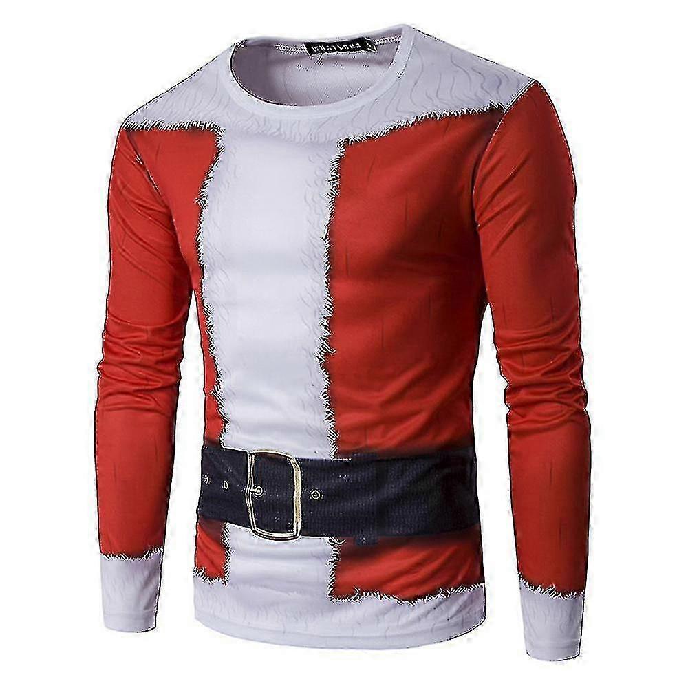 Christmas Party Mens Long Sleeve Crew Neck Printed Tops T-shirts