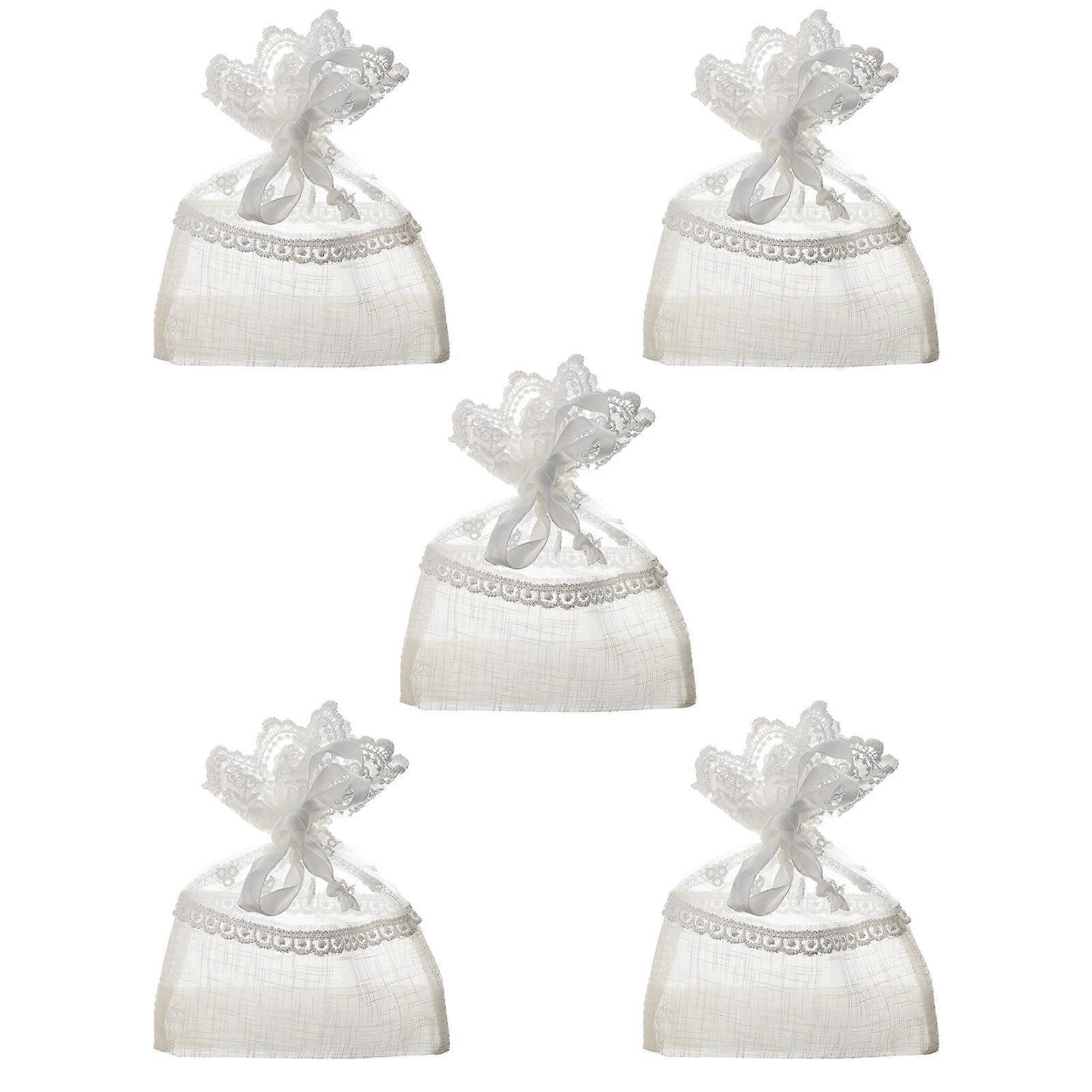 Small Jewelry Bags Drawstring Design Jewelry Storage Pouches Portable 14x10cm Beige 5Pcs