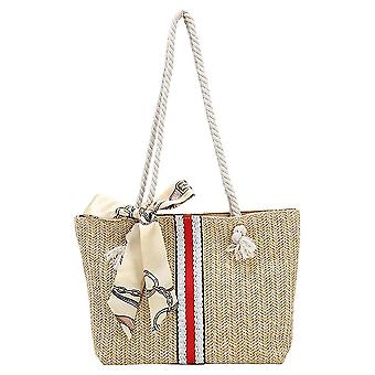 Handbags Women Silk Scarf Straw Woven Patchwork Shoulder Shopping Bag Ladies Summer Beach Vacation