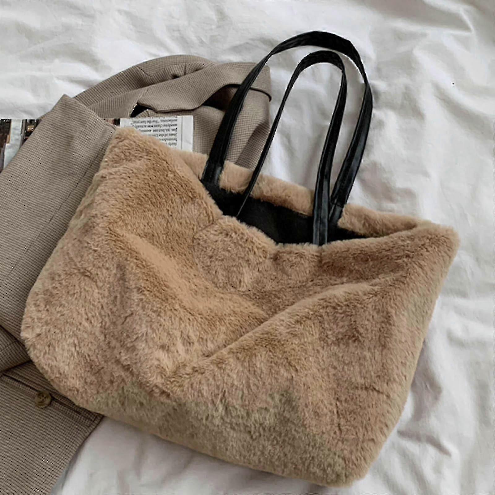 Furry Tote Bags Casual Large Capacity Clutch Bag Solid Color Shoulder Bags-XK9423