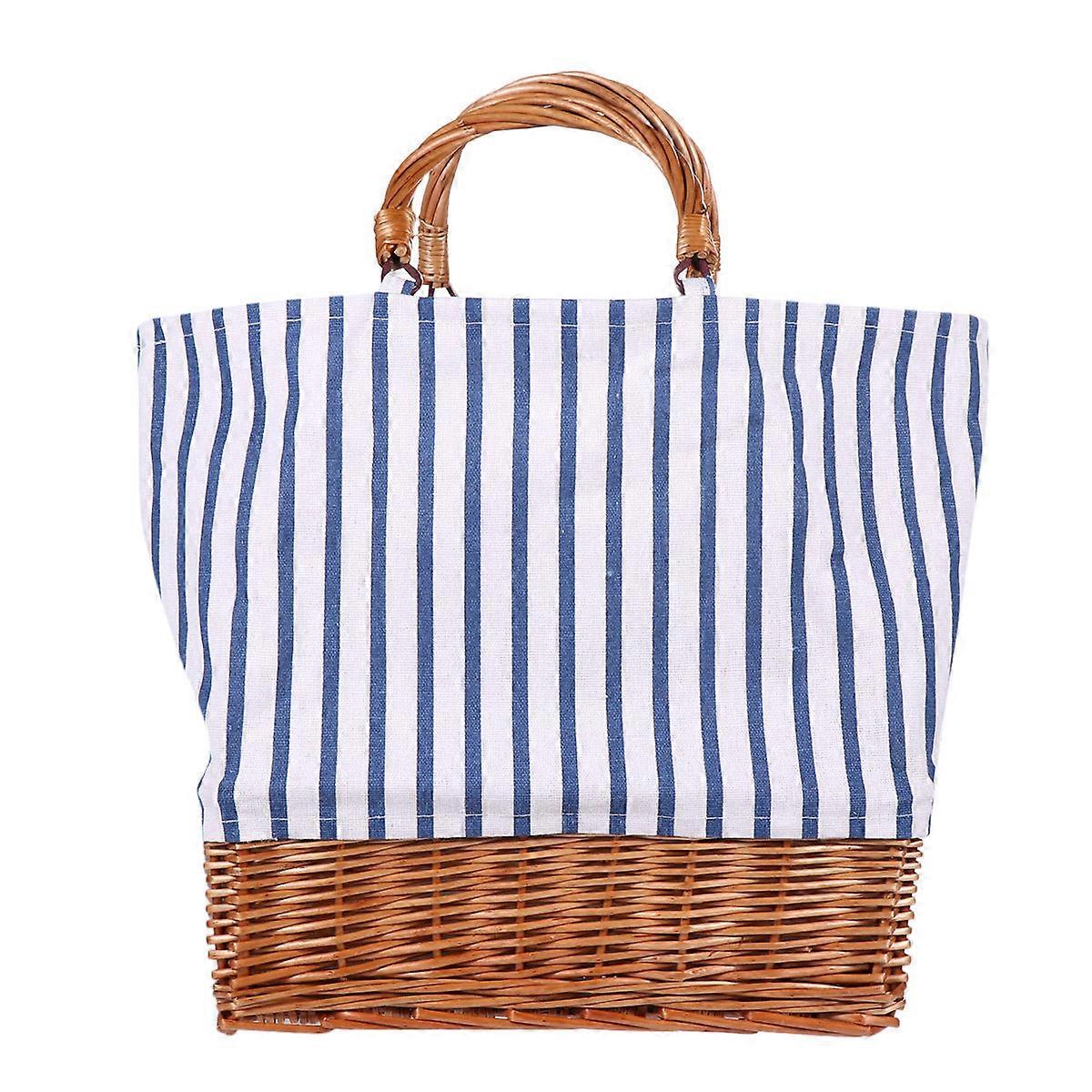 Cloth Tote Bags Large Canvas Tote Bag Blue Striped 38X27CM For Shopping Travel Women 1Pack