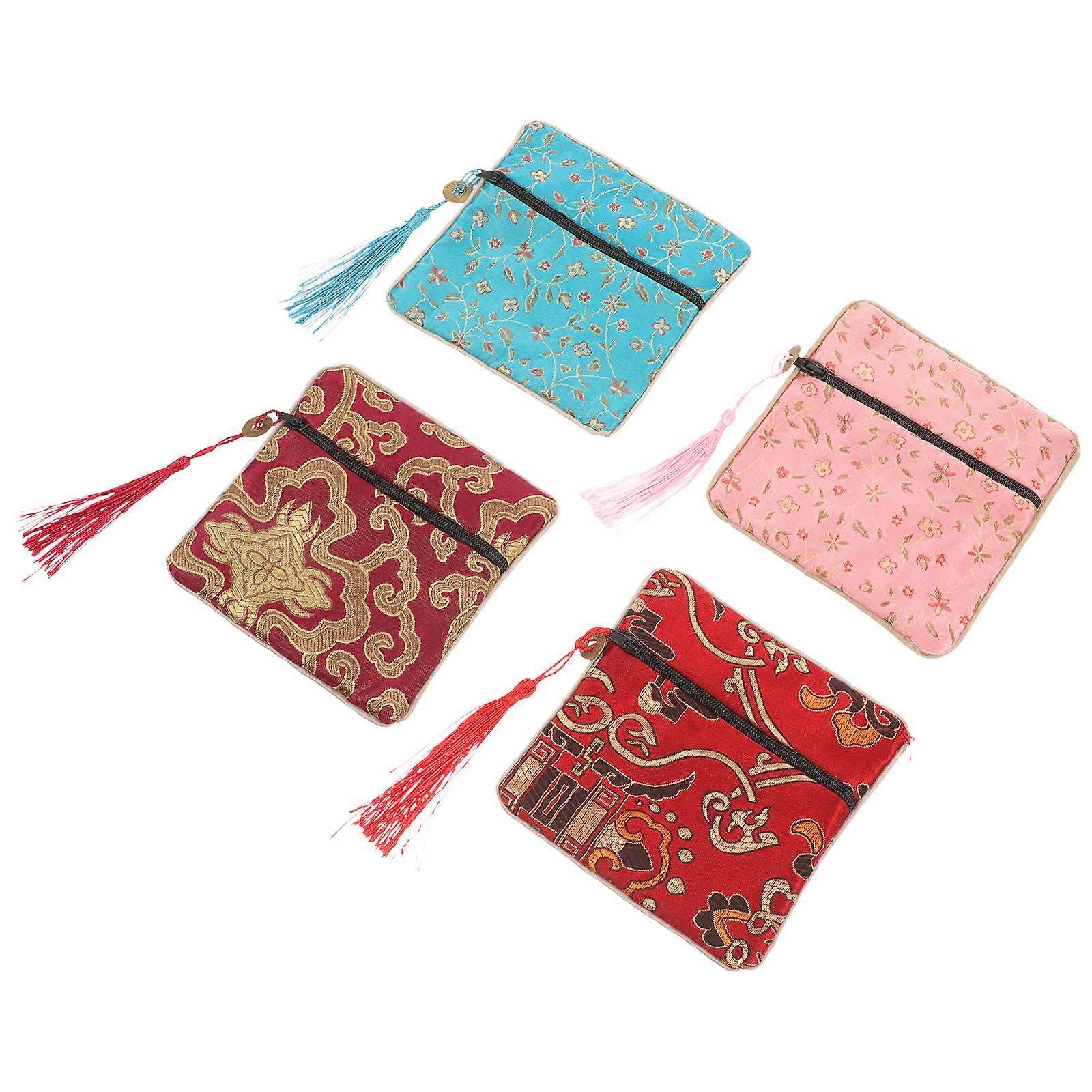Silky Satin Jewelry Bags For Women 4Pcs Ideal For Travel And Daily Use Featuring Stylish Zipper Closure Design And Compact Shape