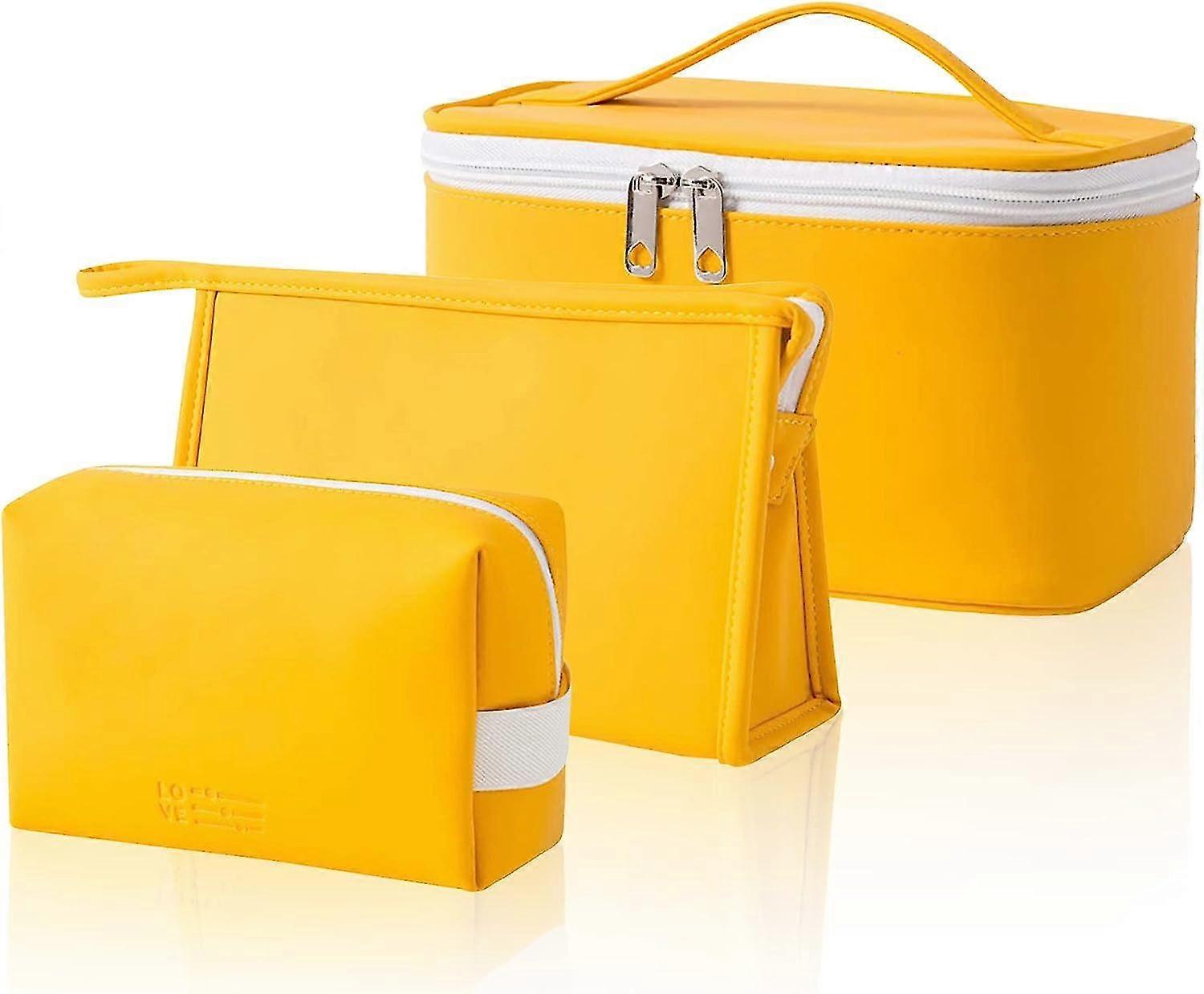Cosmetic Bags For Women 3 Pack Portable Leather Cosmetic Bags With Zipper Waterproof Large Travel Cosmetic Bag Organiser Set