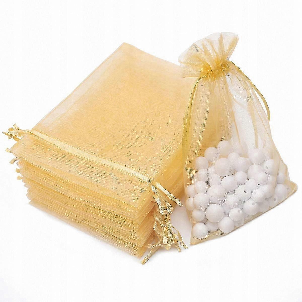 Gold Organza Favor Bags 10x15cm, 100 Count for Wedding and Party Favors