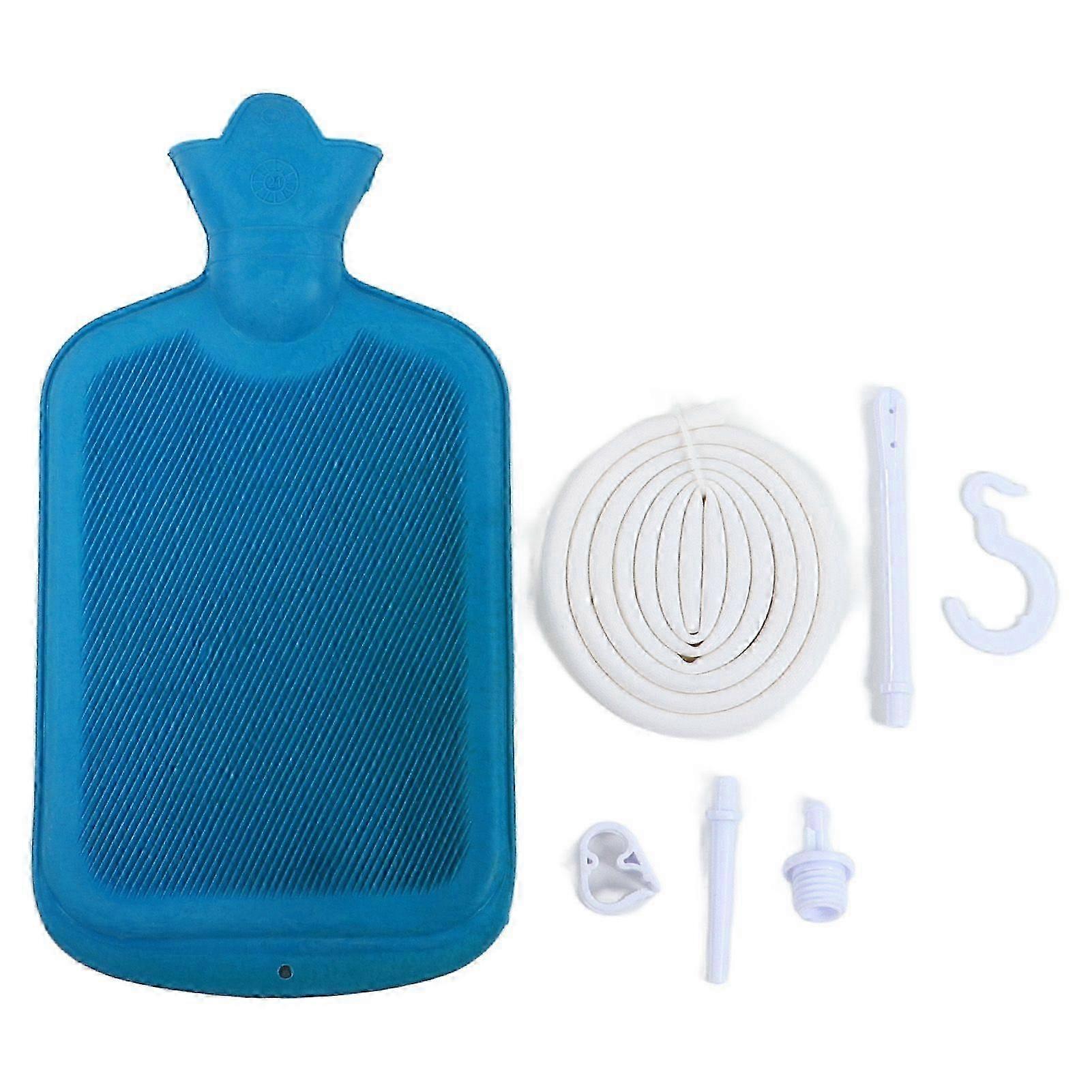 Enema Bag Silicone 2L Blue Reusable Household Irrigator Complete Set with Hook Syringe Pipe