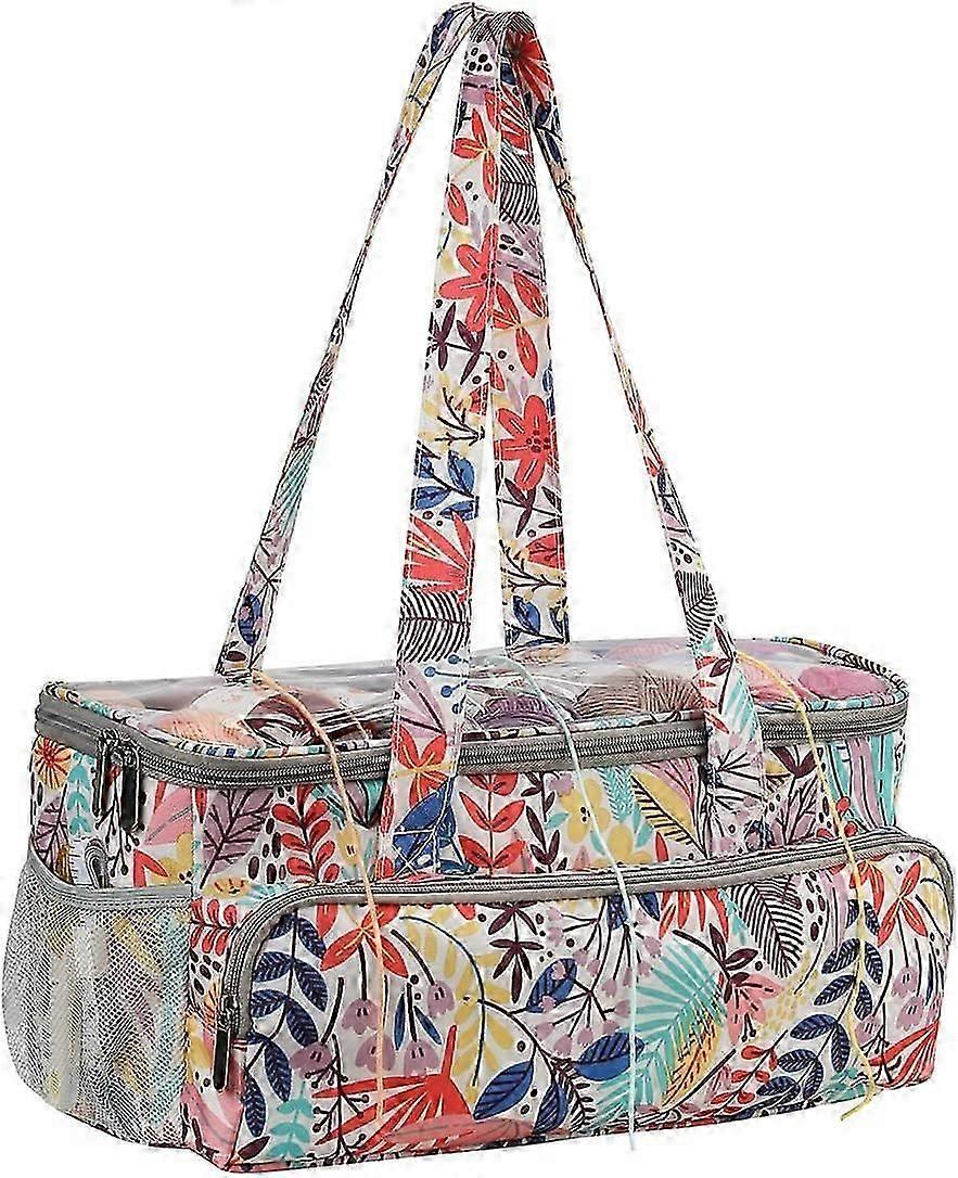 Knitting Bag, Knitting Storage Bag and Knitting Organizers, Crochet Project Bag for Travel, Tote Bag, Embroidery, Yarn Storage Pockets - Forest Orange