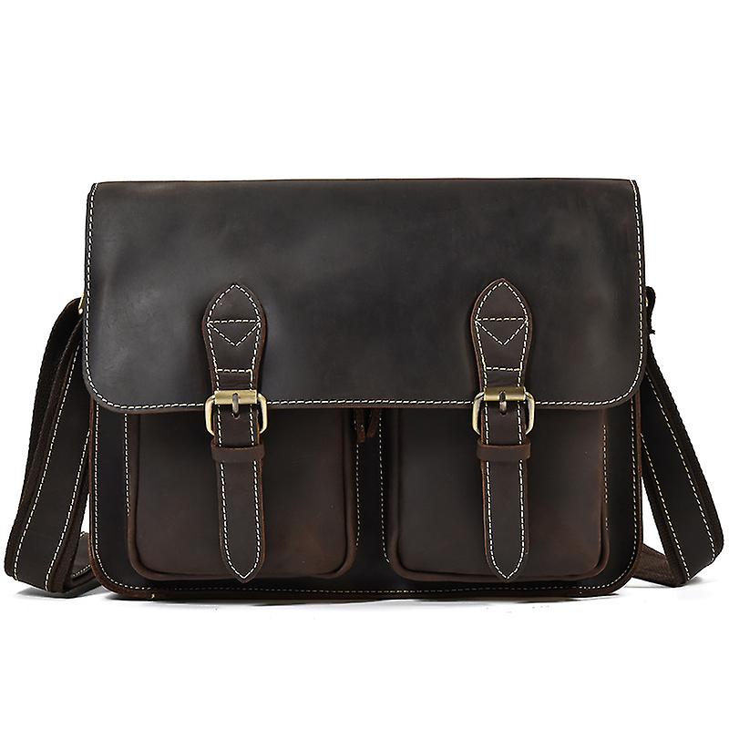 Euramerican Retro Briefcase Crazy Horse Skin Head Layer Cowhide Crossb