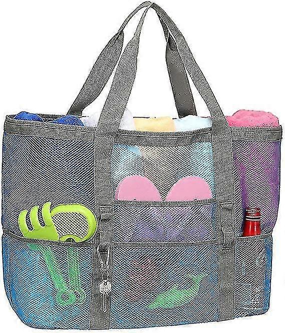Beach Bag, F-color Mesh Beach Bag Oversized Beach Tote 9 Pockets Beach Toy Bag
