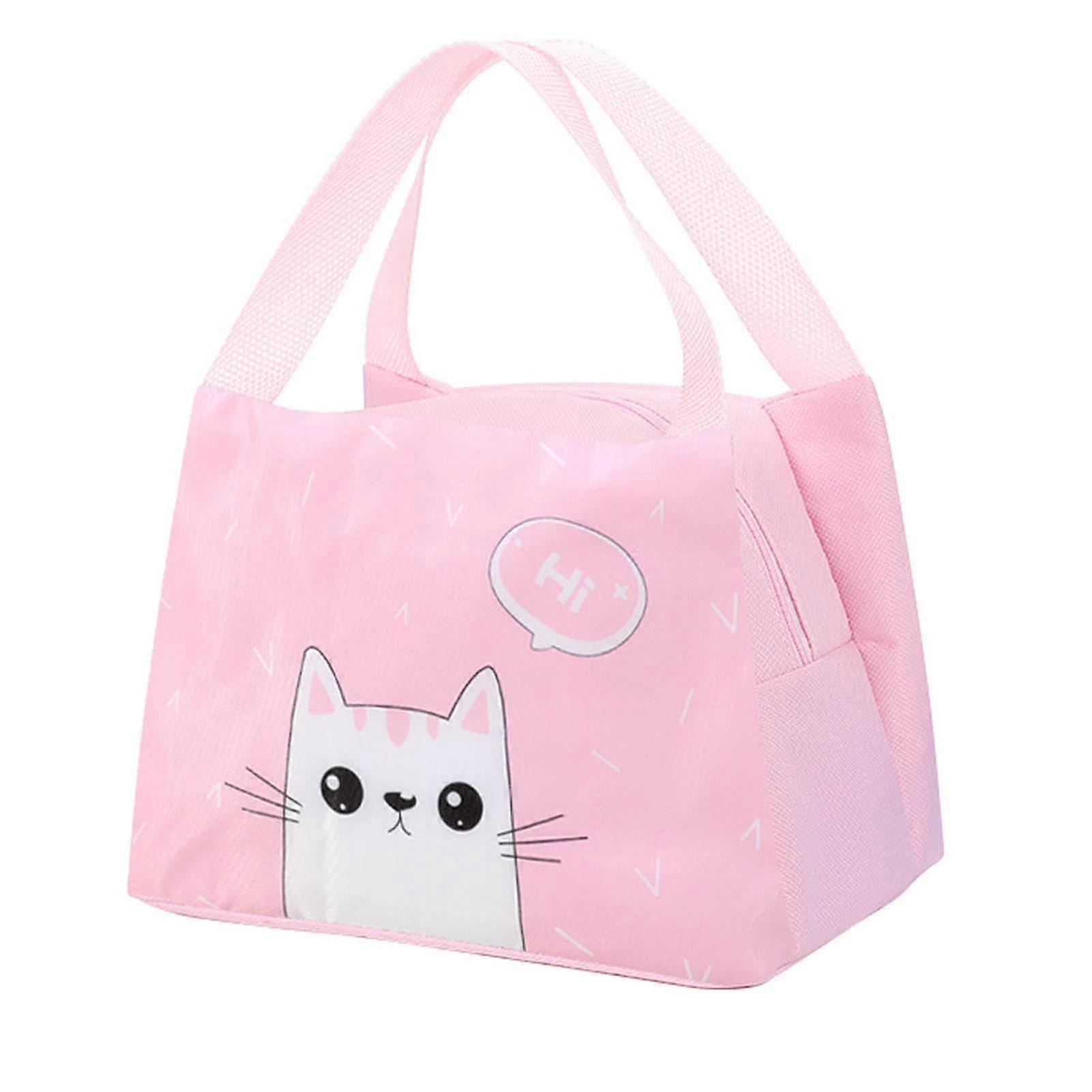 Lunch Bag Insulated Aluminum Foil Large Capacity Handheld Portable Cute Cartoon Pink Cat