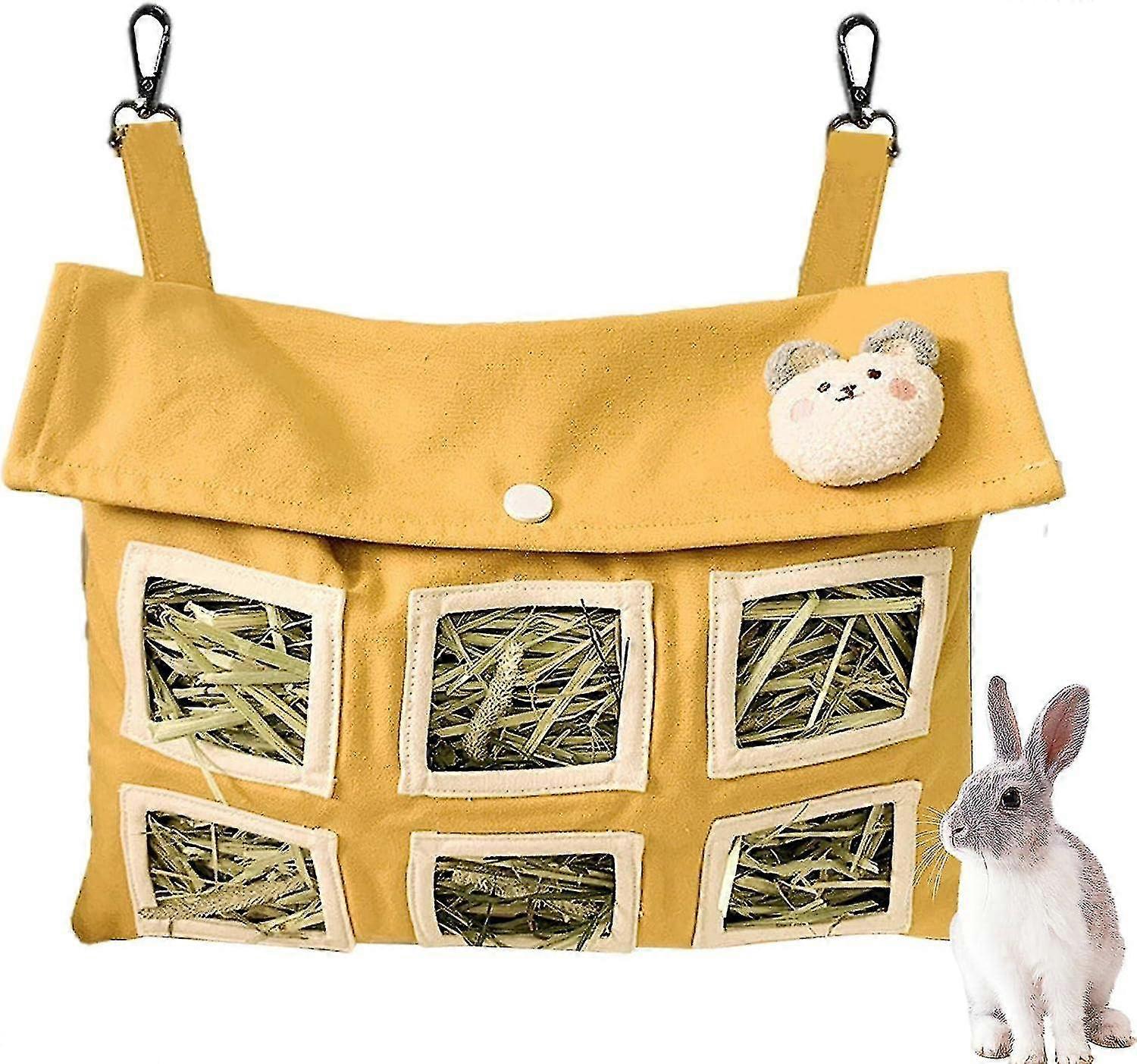Soft CanvasOur Rabbit Hay Feeder Bag is extra safe, the Rabbit Hay Feeder Bag is made of soft canvas, which will not hurt your pet, and can ensure safety of your pet. Reduce WasteThis is a welldesigned hay feeder for your rabbit, the Bunny Hay Bag keeps the rabbit cage clean while reducing hay waste, it can store a lot of hay. Easily UsedThe height of the Rabbit Hay Bag can be adjusted freely, suitable for ing in the cage. Simply the hook high to secure it in the cage. Foldable DesignThe Cute Rabbit Hay Feeder Bag adopts a foldable design, which is lightweight and easy to carry and store. It is also designed with 3 holes. Suit Most Small PetsOur ing Rabbit Hay Feeder Bag is perfect for small pets, such as rabbits, chinchillas, guinea pigs, and more, ing Rabbit Hay Feeder Bag is available in small and medium sizes.