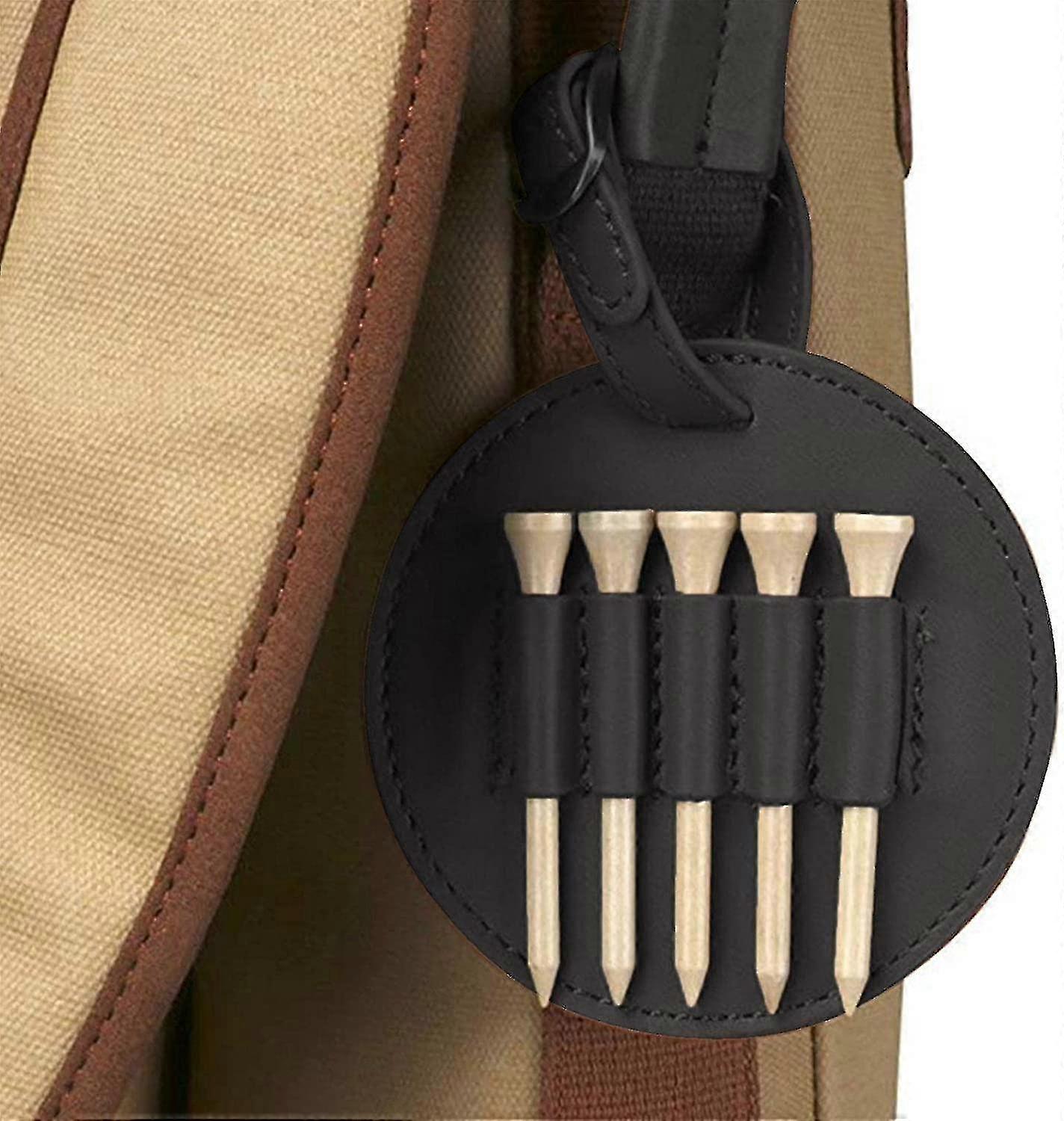 Golf Tee Bag - 5 Tee Holes Portable Tee Holder 2pcs Wooden Tee Storage Leather Case, Easy Hangings,