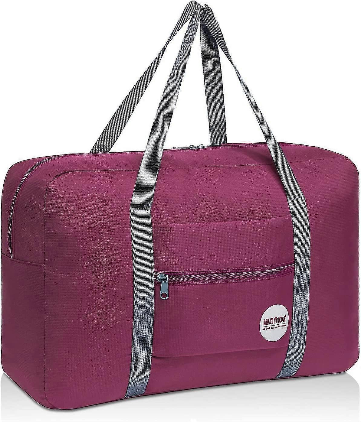 Save Your Oversize Charges: WANDF carry on bag measures 45 x 32 x 16 cm, it meets most airlines underseat cabin bag size, such as Easyjet Airlines, TUI Airlines, etc. And it can be placed under seat to save your oversize charges. Lightweight & Easy Carrying: Our travel bag can be packed into a small size measures 17 x 18 cm when not use. And the capacity is 25L yet the weight only 260g. Perfect hand luggage bag for travel. Trolley Sleeve with Zipper Pocket: A special trolley sleeve in this flight bag allows the holdall to slide over the luggage handle. An extra additional zipper pocket to store your daily essentials. Water Resistant Fabric: Made of high quality and water-resistant fabic to protect your gears well from rain or wet. Easy to store all your fitness or travel items, good choice for garment bag, sports, fitness, yoga, travel, weekend shopping, sleepovers, camping and picnic. Multifunctional: Easily held all your gym or travel items, great choice as a weekend bag, overnight bag, gym bag, sports bag, workout bag, travel tote bag, hospital bag, carry on luggage. Product Description Water-resistant Fabric Made of water-resistant fabric to protect your gears well from rain or wet. High Quality Zippers With smooth Reliable zippers, no need to worry any ripping or break during trips. Metal Buckle Every buckle connection uses strong and reinforced metal fittings for prolonged usage. Which also can support heavy duty. Trolley Sleeve with Zipper Pocket The Trolley sleeve will slide easily over the handle of a common suitcase. The front zipper pockets is large enough to hold the stashing boarding passes and passports and you can quickly access the essentials. WANDF Duffel Bag Products Comparison 25L 25L