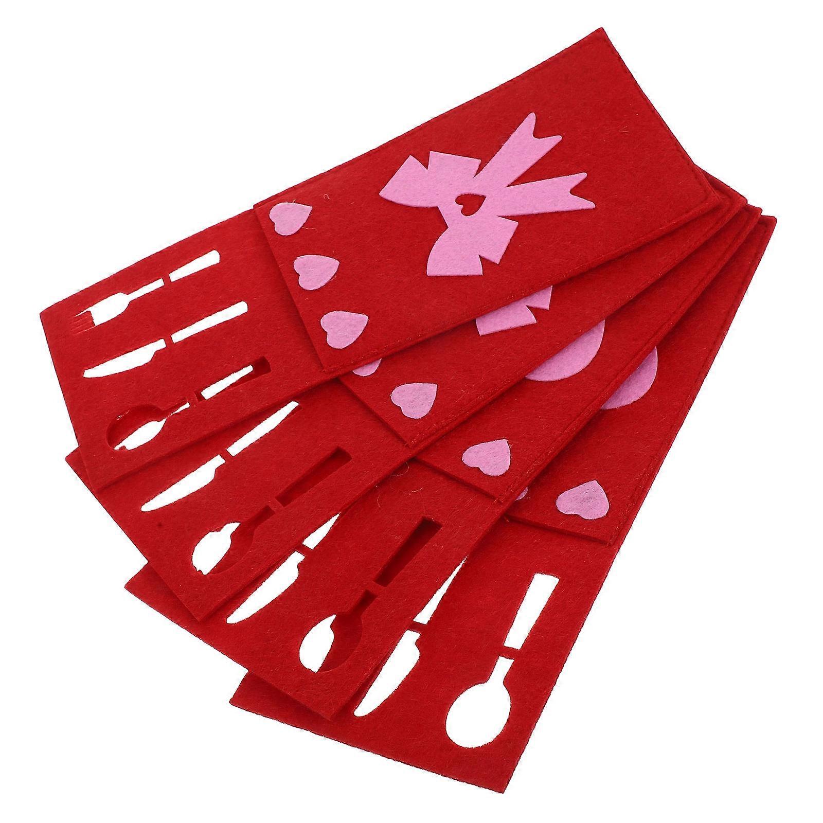 Cutlery Pouch Valentines Day Silverware Bag Romantic Style Felt Material Portable Utensil Storage For Wedding 25.00X10.00X0.40cm Red 4Pcs