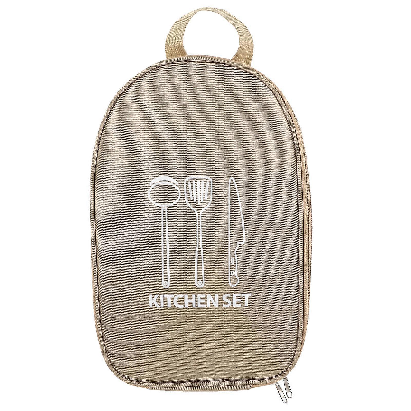 Portable Cutlery Bag Camping Tableware Carrying Storage Case for Outdoor Camping Beige 35x22cm Storage 1Set