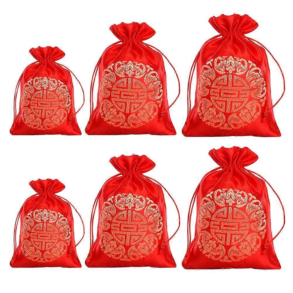 Brocade Drawstring Bag Wedding Celebrations 10x13CM Red Favor Women 24Pcs