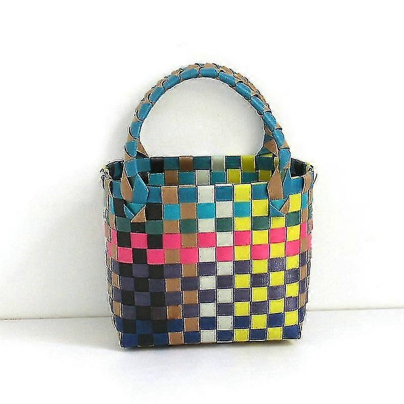 Colour Plastic Woven Bag, Small Square Bag, Vegetable Basket Bag, Color Small Basket, Photo Taking, Beach Bag, Women's Bag
