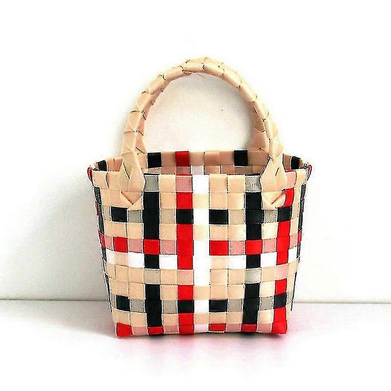 Colour Plastic Woven Bag, Small Square Bag, Vegetable Basket Bag, Color Small Basket, Photo Taking, Beach Bag, Women's Bag