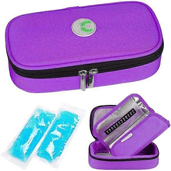 insulin cooler bag Diabetes bag - Medication Diabetic insulated portable cooler bag with 2 ice packs (purple)